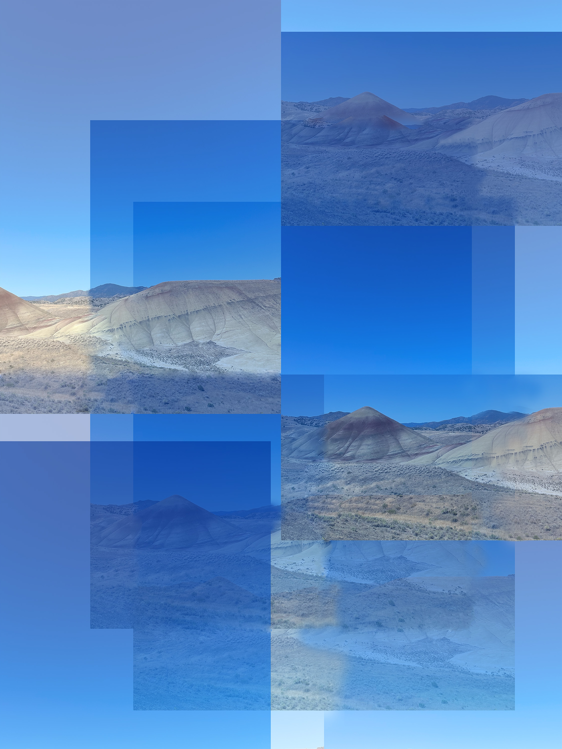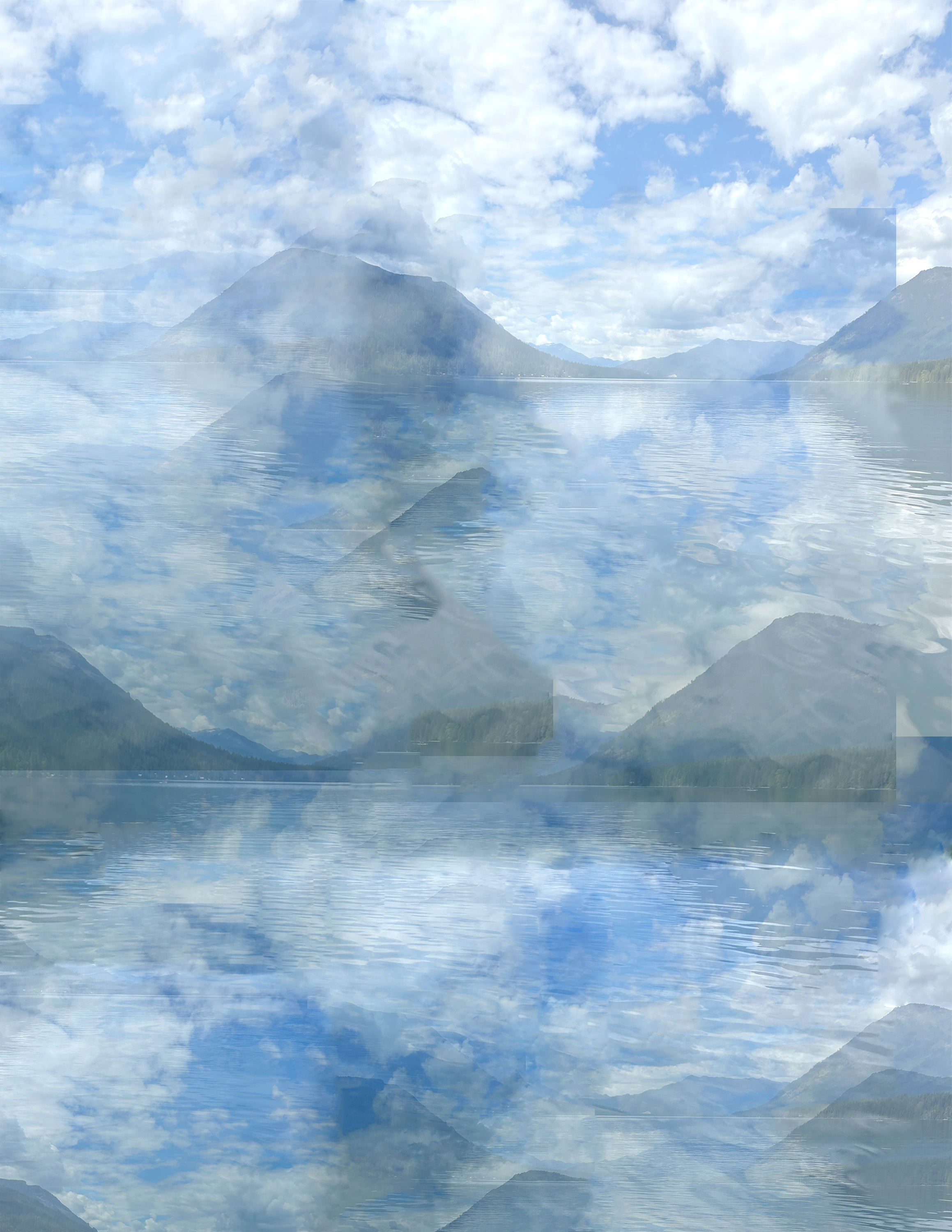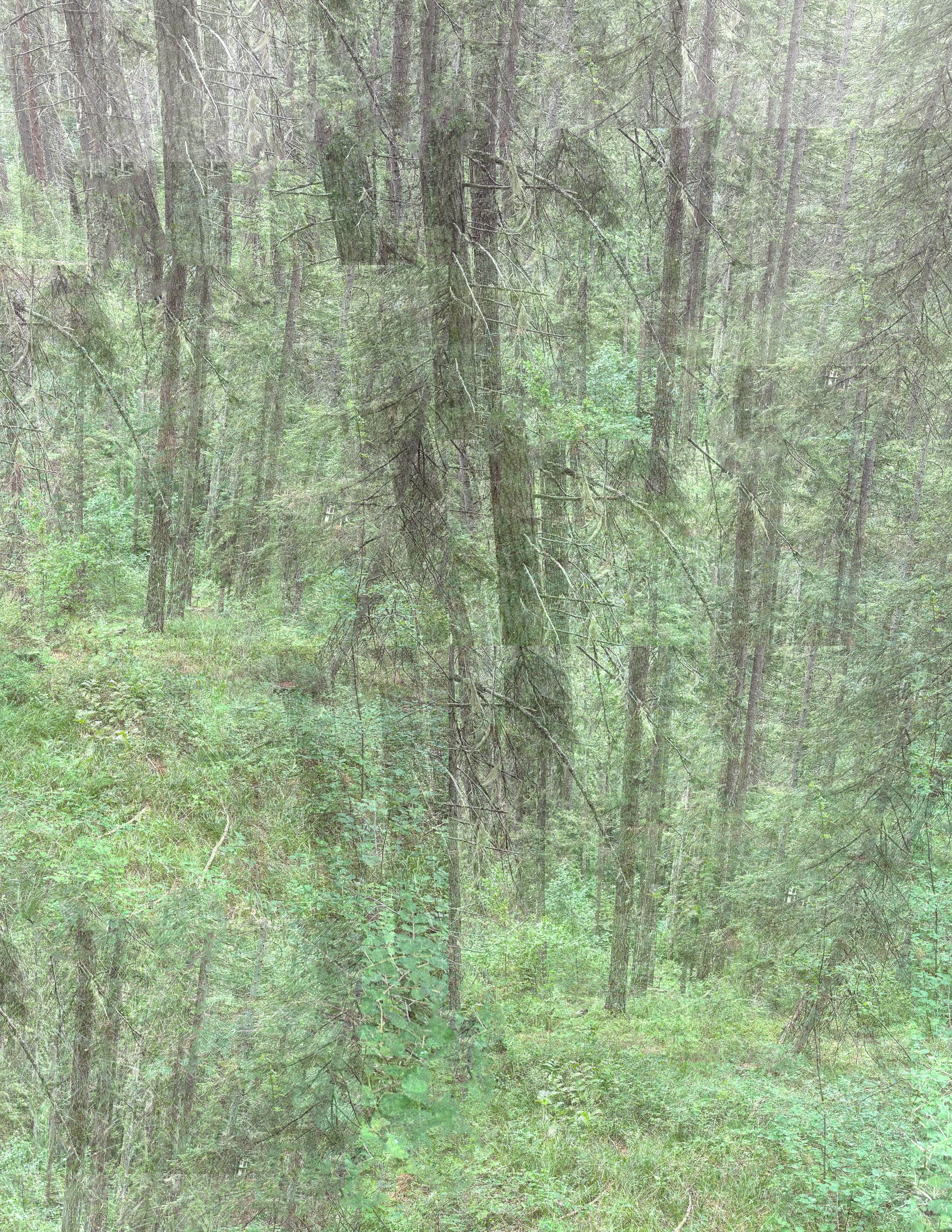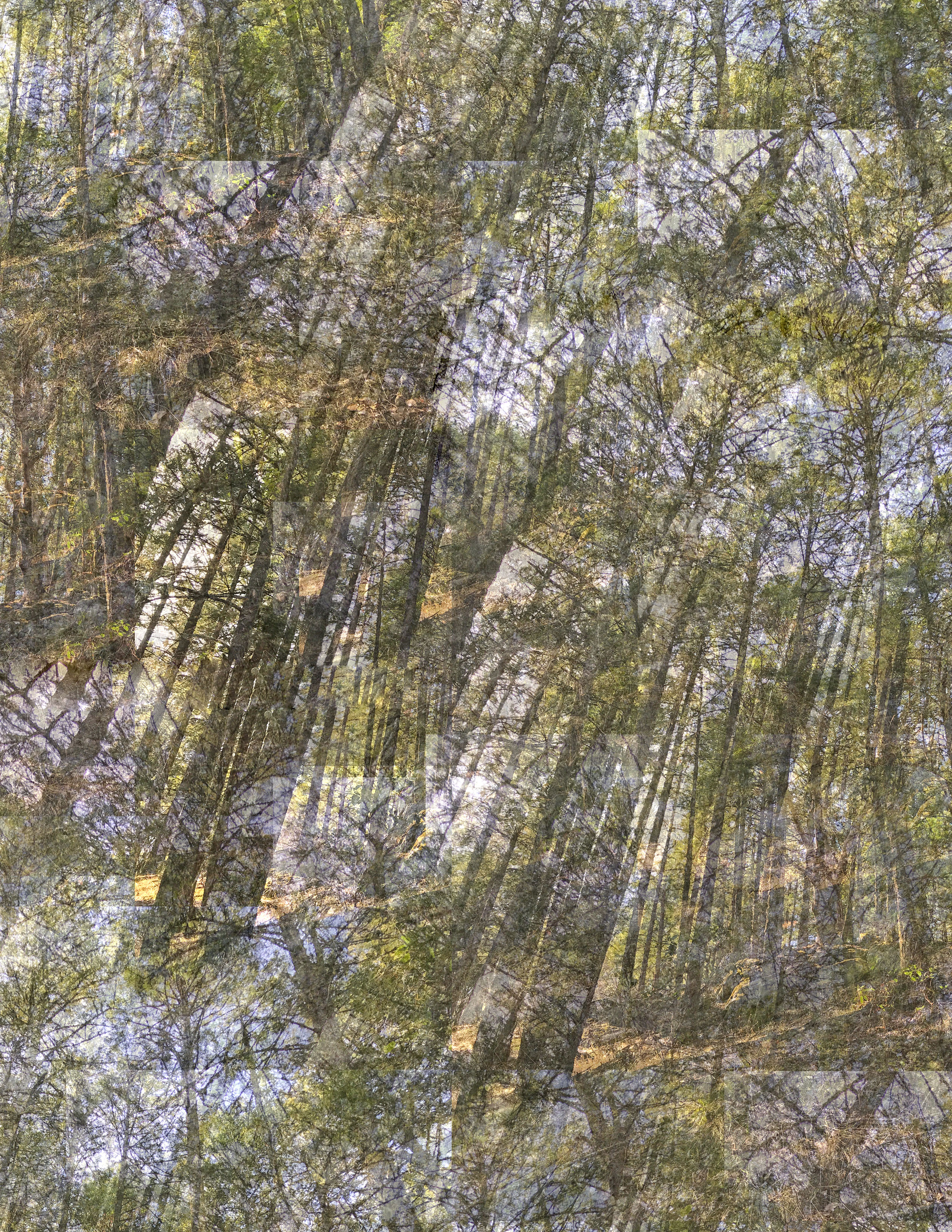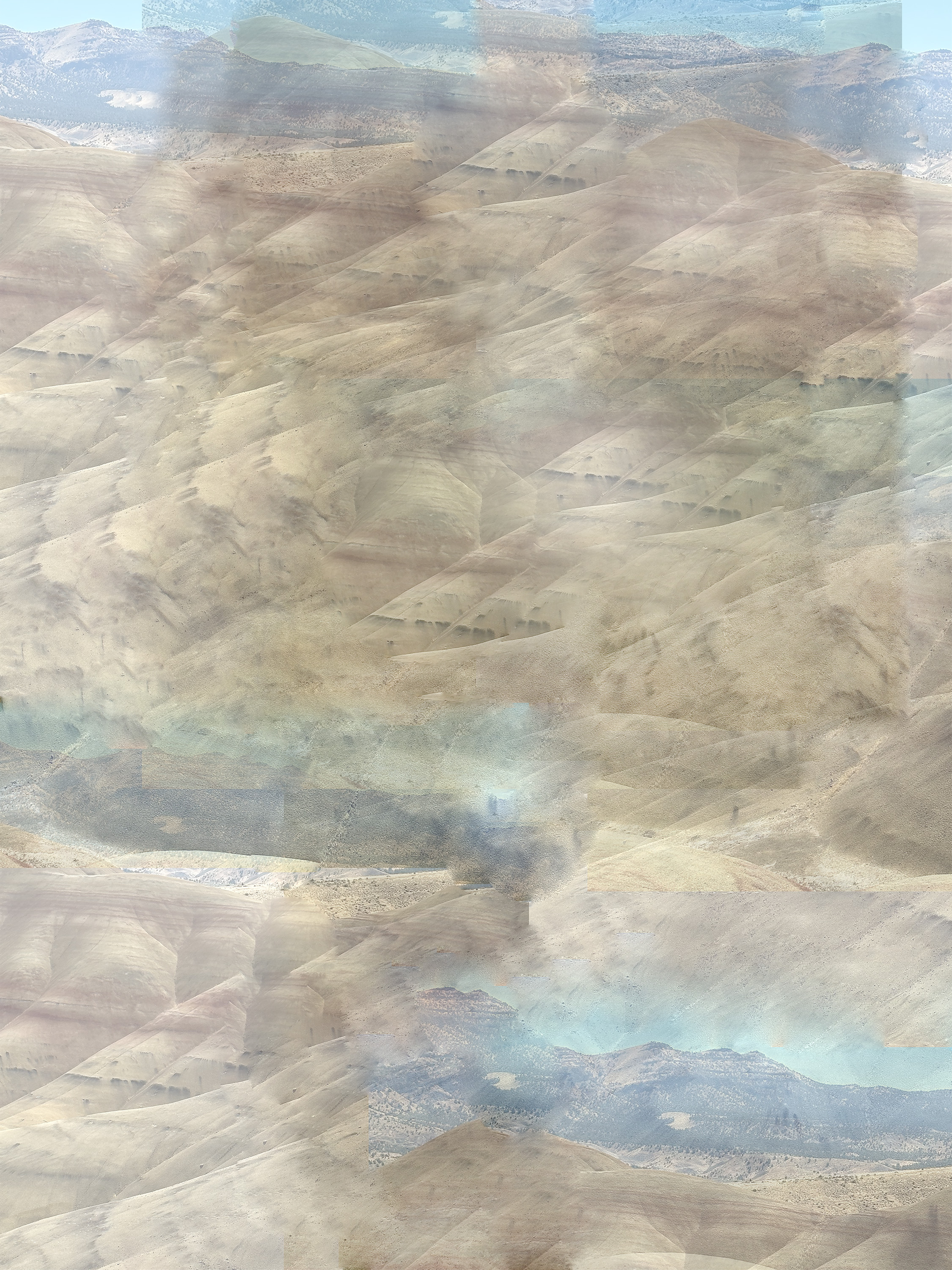 This body of work begins with thinking of landscape as a process not a thing. I have been making prints by translating the musical concept of polyphony) into visual terms. The multiple voices of polyphony challenge the western obsession with the individual — especially as it’s enforced by the single authoritative lens of the camera. Layering and repetition are used to create disorienting rhythms to shake up the logical thinking patterns of the viewer. At once spiritual and political, these images of the American West pivot away from the historical use of landscape photography in the colonization process. They ask us to go back to the origins of the word respect, which means, “to look again,” and to make room for another kind of relationship with the landscape and the more than human world.