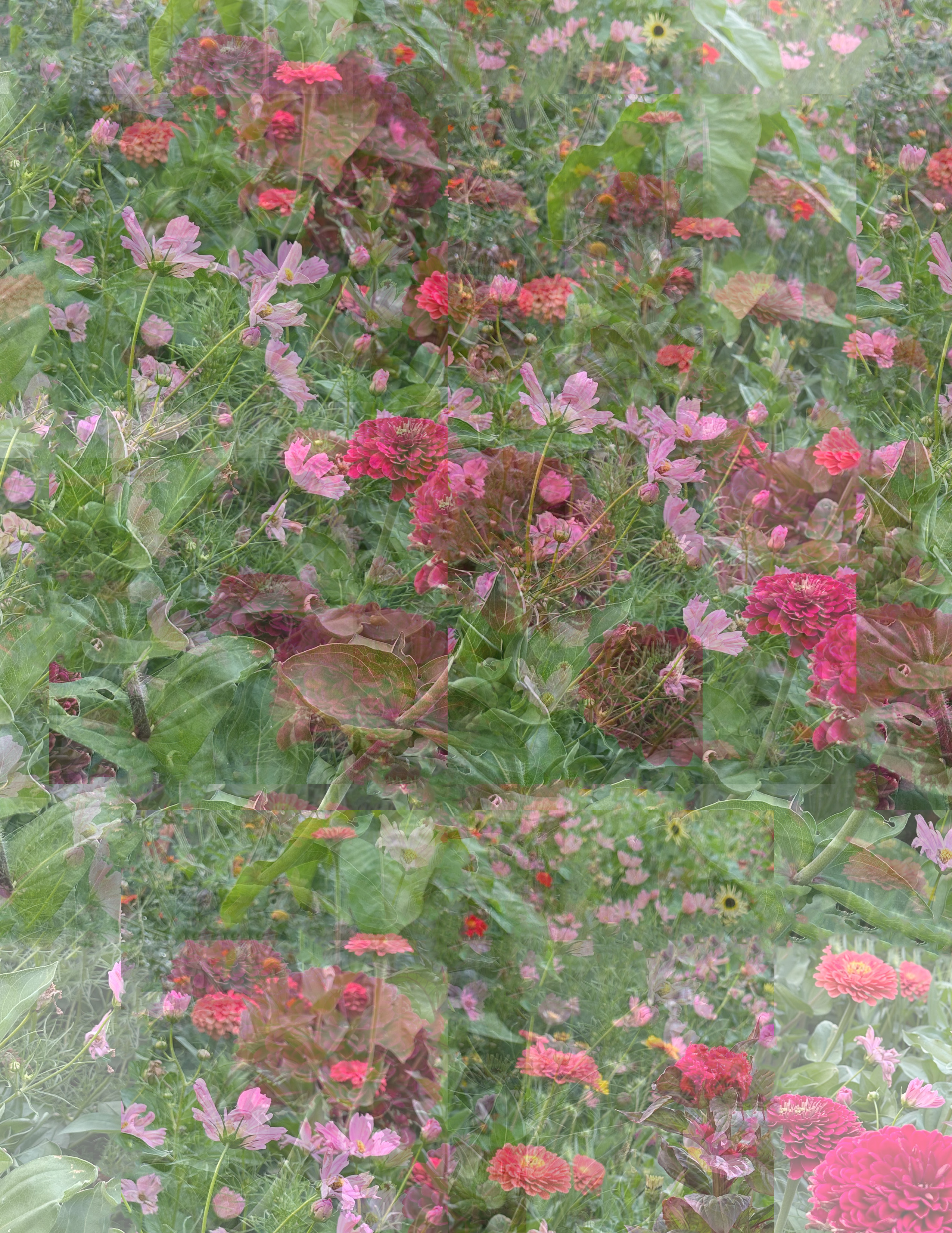 A series of photographs that are layered in photoshop. I use a variety of tools to overlay, adjust opacities, blur and erase boundaries, so that the images begin to slip through one another.